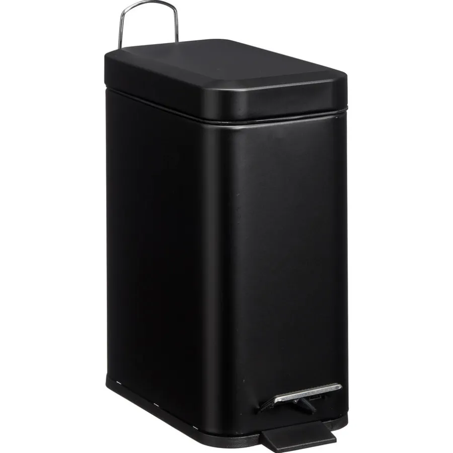 Deze moderne, zwarte rechthoekige pedaalemmer is ideaal voor elke ruimte. Met een inhoud van 5 liter en afmetingen van 36x14x30,5 cm (lxbxh) biedt deze prullenbak voldoende capaciteit zonder veel ruimte in te nemen. De stevige metalen buitenkant maakt de afvalbak duurzaam. De pedaalemmer bevat een losse binnenemmer van kunststof, wat legen en schoonmaken eenvoudig maakt.