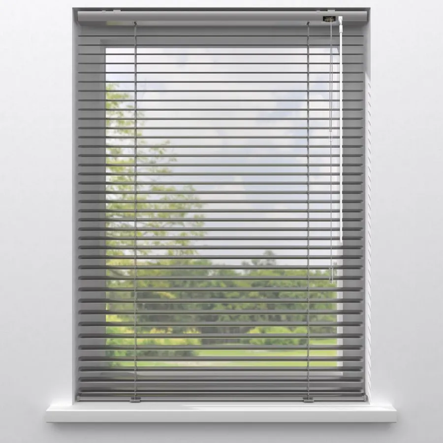Aluminium jaloezie met zijdeglans brons 25mm lamellen. De jaloezie heeft meekleurende ladderkoorden, een aluminium systeemkleur en een transparante tuimelstaaf en cilindervormige koordhanger. De eindkappen zitten in de cassette verwerkt en hebben een transparante kleur. Met de handmatige bediening bepaal je eenvoudig de mate van lichtinval en privacy. De jaloezie is vochtbestendig, eenvoudig schoon te maken en geschikt voor keukens en badkamers. Op maat te maken en eenvoudig met de juiste afmetingen te bestellen. Geschikt voor zijgeleiding en draai-kiepramen. Niet volledig verduisterend.