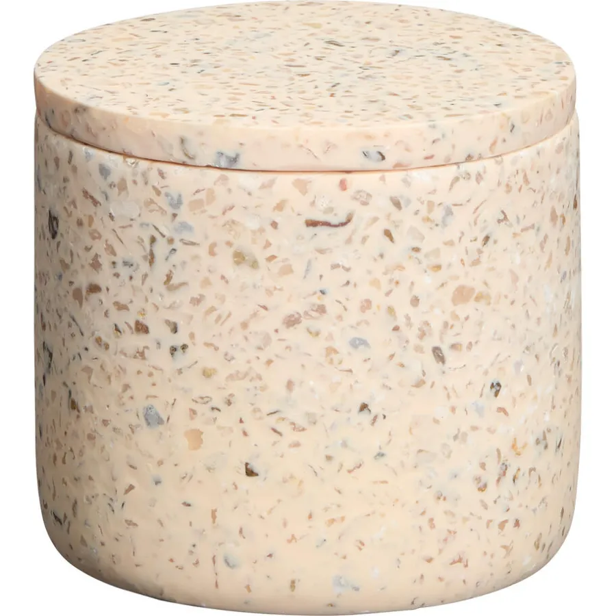 Het sfeervolle Terazzo wattenpotje heeft een prachtige roze kleur.Dit stijlvolle potje, gemaakt van 100% hars (polyresin), is zowel praktisch als decoratief.Ideaal voor het opbergen van watten en andere kleine benodigdheden.Voeg elegantie toe aan jouw badkamer met dit wattenpotje engeniet van de perfecte combinatie van functionaliteit en esthetiek.