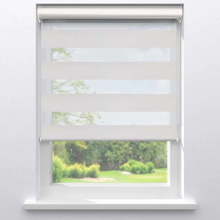 Duo rolgordijn Emiel is in een off-white kleur. Het duo rolgordijn is opgebouwd uit afwisselend transparante en ondoorzichtige banen. Met een soepel ketting systeem bepaal je zo lichtinval, verduistering, en de mate van privacy. Het materiaal is gemaakt van polyester. Zo is het duo rolgordijn behoorlijk slijtvast, en is het gemakkelijk schoon te maken met een vochtige doek.