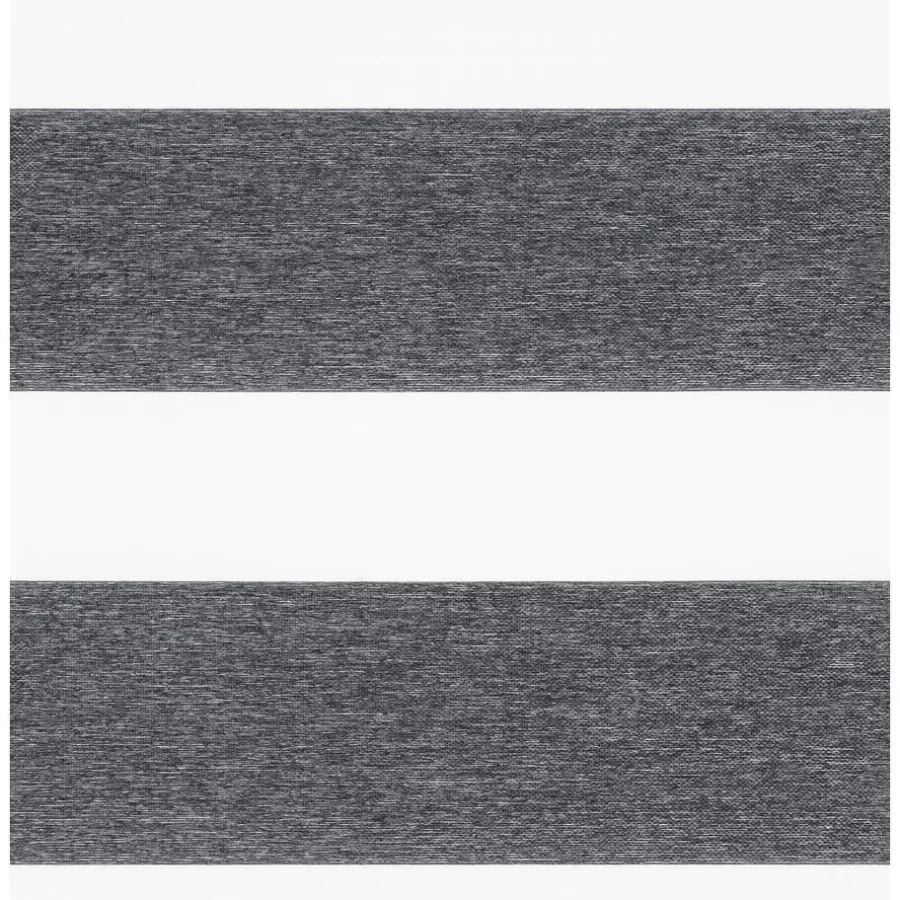 Lichtdoorlatend duo-rolgordijn donkergrijs gemêleerd. De transparante banen hebben een fijne gaasstructuur. De afwisselende open en dichte stofbanen bewegen voor elkaar langs. Zo bepaal je eenvoudig de lichtinval en privacy. Je kunt zelf de kleur kiezen van de cassettes, eindkappen, kettingen, onderlatten en roedes. De bedieningszijde kies je ook zelf: rechts of links. Op maat te maken en eenvoudig met de juiste afmetingen te bestellen.