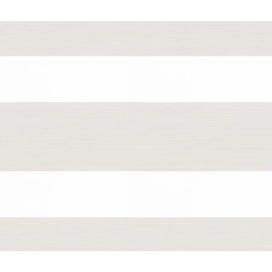 Lichtdoorlatend duo-rolgordijn off-white met streep dessin. De transparante banen hebben een grovere gaasstructuur. De afwisselende open en dichte stofbanen bewegen voor elkaar langs. Zo bepaal je eenvoudig de lichtinval en privacy. Je kunt zelf de kleur kiezen van de cassettes, eindkappen, kettingen, onderlatten en roedes. De bedieningszijde kies je ook zelf: rechts of links. Op maat te maken en eenvoudig met de juiste afmetingen te bestellen.