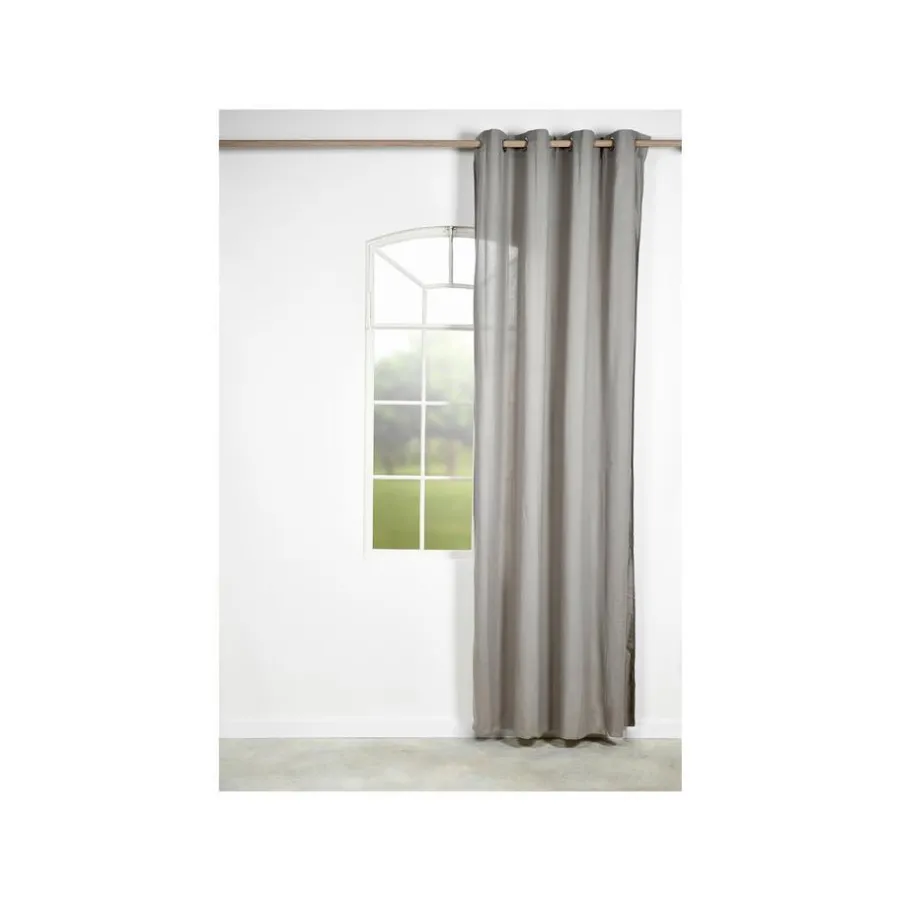 Kant en klaar gordijn taupe met ringen. Ademend en sterk. Gemaakt van 100% gerecycled materiaal waarvan 50% katoen. 140×260 cm (bxh).