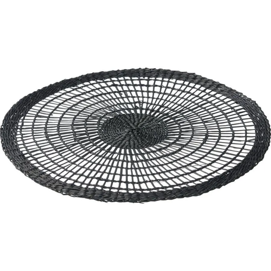 Ronde placemat met zwarte kleur en sierlijk patroon. 38 cm doorsnede.