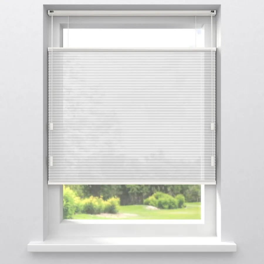 Lichtdoorlatende dubbele plissé wit met fijne structuur en witte achterzijde. De dubbel geplooide stof met een honingraatstructuur zorgt voor extra isolatie. De koorden zijn verwerkt in de honingraat en zijn niet zichtbaar. Verkrijgbaar als top down, top down bottom up of top down bottom up gespannen. Een top down bottom up gordijn kan zowel aan de bovenkant als de onderkant worden uitgevouwen voor volledige controle over de gewenste lichtinval en privacy. Een gespannen plissé is zeer geschikt voor draaikiepramen omdat de stof goed op zijn plek blijft. Op maat te maken en volledig naar wens samen te stellen. Bepaal zelf de kleur van het systeem en kies uit een bijpassende koordhanger van kunststof, rvs of zwart metaal.
