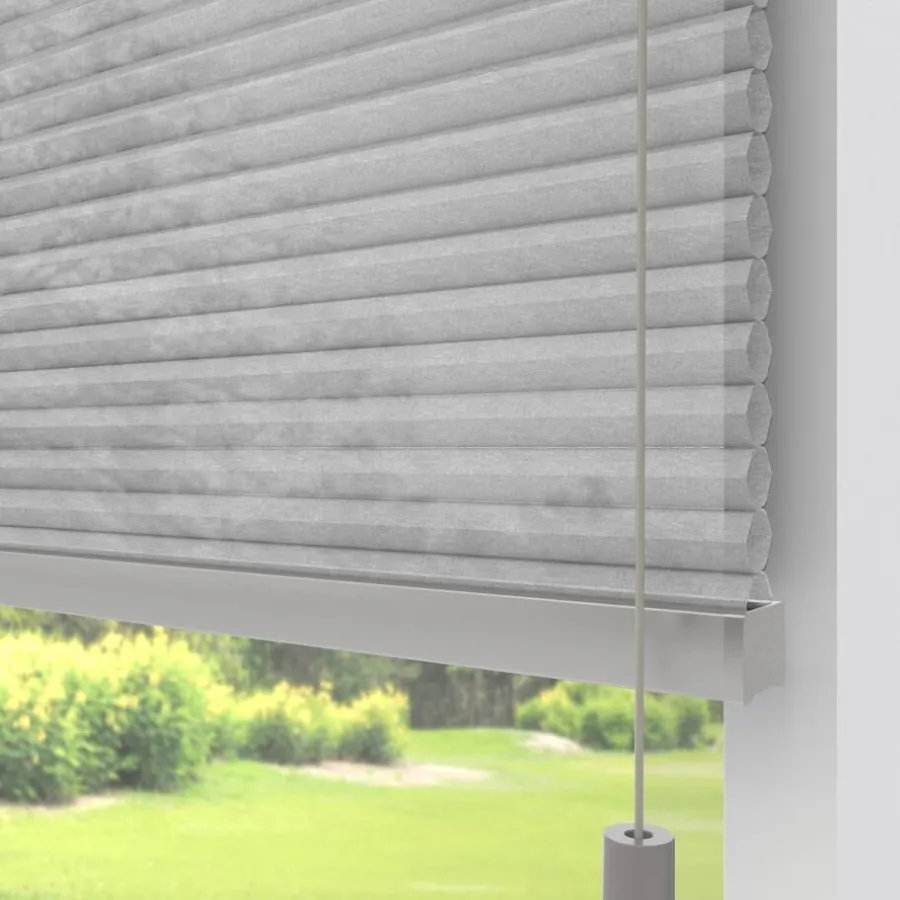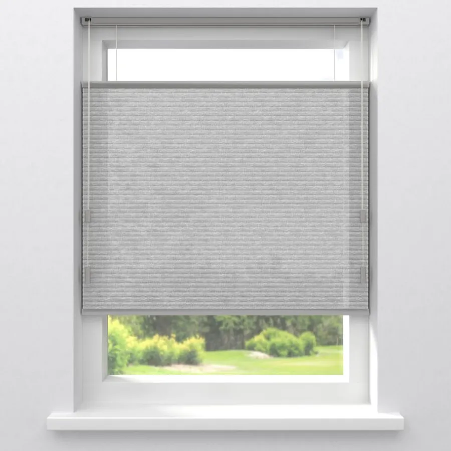 Lichtdoorlatende dubbele plissé van lichtgrijze gemêleerde fijne stof. Dit mooie dubbele plissé gordijn heeft de hoogste isolatiewaarde. Het heeft een honingraatstructuur die een stilstaande luchtlaag creëert, dit zorgt voor een isolerende werking. Het zorgt ervoor dat de warmte binnen blijft als het buiten koud is en andersom. De aluminium coating aan de binnenzijde, levert de meeste energiebesparing op. Voor een isolerende werking kun je ook denken aan een combinatie tussen plisségordijnen en een overgordijn. De koorden zijn verwerkt in de honingraat en zijn niet zichtbaar. Verkrijgbaar als top down, top down bottom up of top down bottom up gespannen. Een top down bottom up gordijn kan zowel aan de bovenkant als de onderkant worden uitgevouwen voor volledige controle over de gewenste lichtinval en privacy. Een gespannen plissé is zeer geschikt voor draaikiepramen omdat de stof goed op zijn plek blijft. Op maat te maken en volledig naar wens samen te stellen. Bepaal zelf de kleur van het systeem en kies uit een bijpassende koordhanger van kunststof, rvs of zwart metaal.
