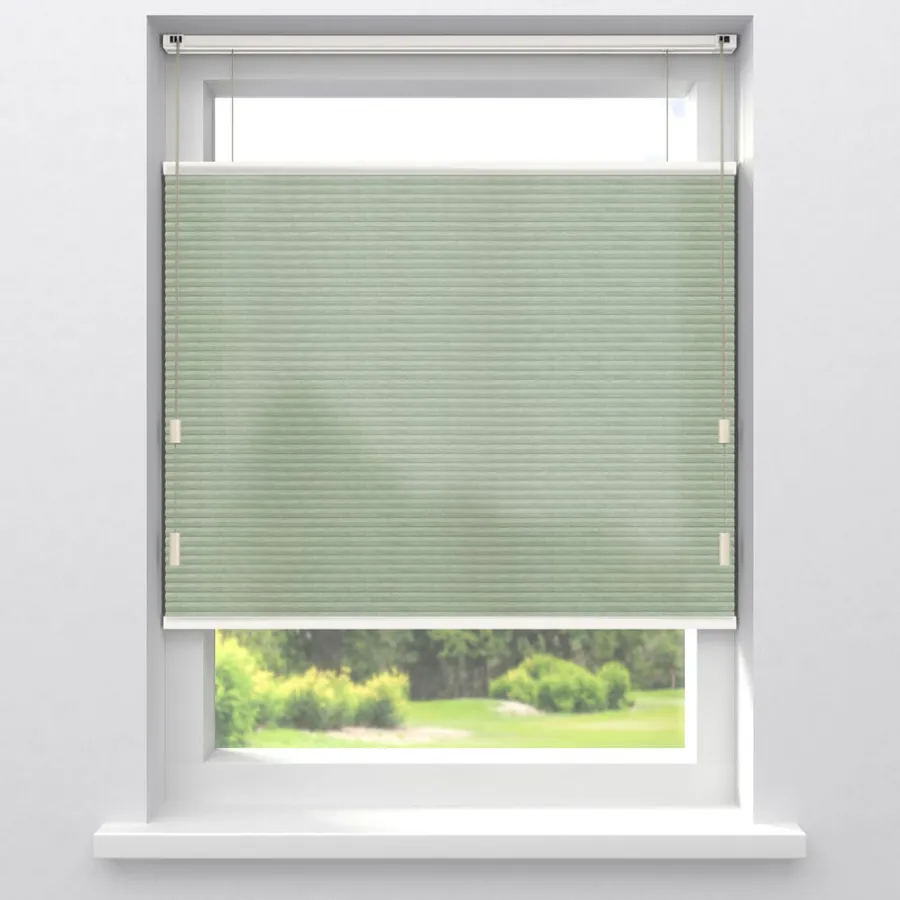 Plisségordijn Dana groen is een lichtdoorlatend dubbel plisségordijn. Dit betekent dat het een honinggraatstructuur heeft en het geeft daardoor een luxe uitstraling. Dit plisségordijn heeft een plooibreedte van 25mm en is daardoor zeer geschikt voor kleine tot middelgrote ramen.