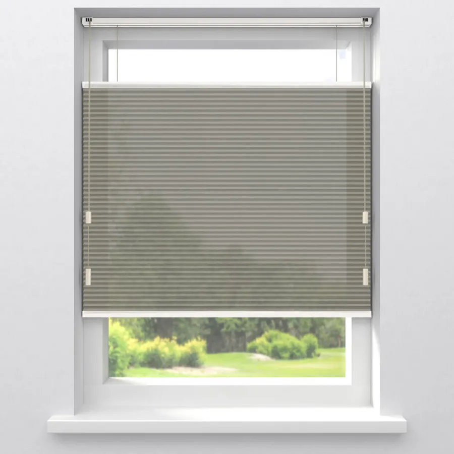 Plisségordijn Dewi taupe is een lichtdoorlatend dubbel plissé gordijn. Dit betekent dat het een honinggraatstructuur heeft en daardoor een luxe uitstraling geeft. Deze structuur zorgt voor een stilstaande luchtlaag, waardoor de warmte binnen blijft voor optimale isolatie en geluiddemping. Dit plissegordijn heeft een plooibreedte van 25mm en is daardoor erg geschikt voor kleine tot middelgrote ramen.