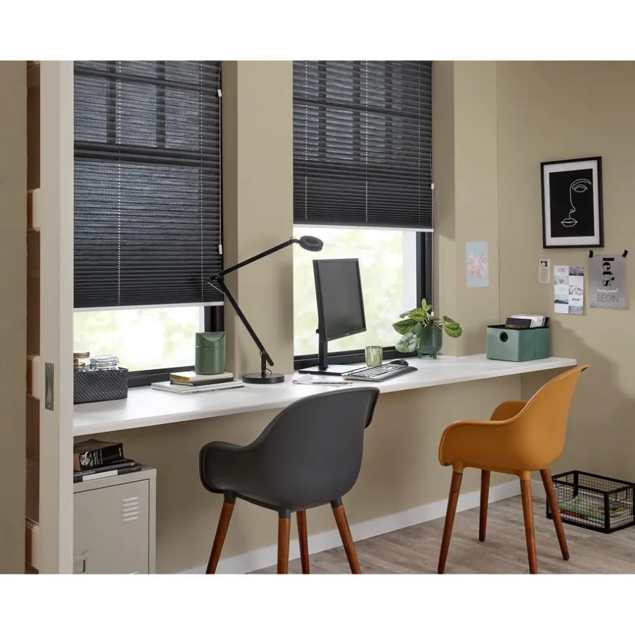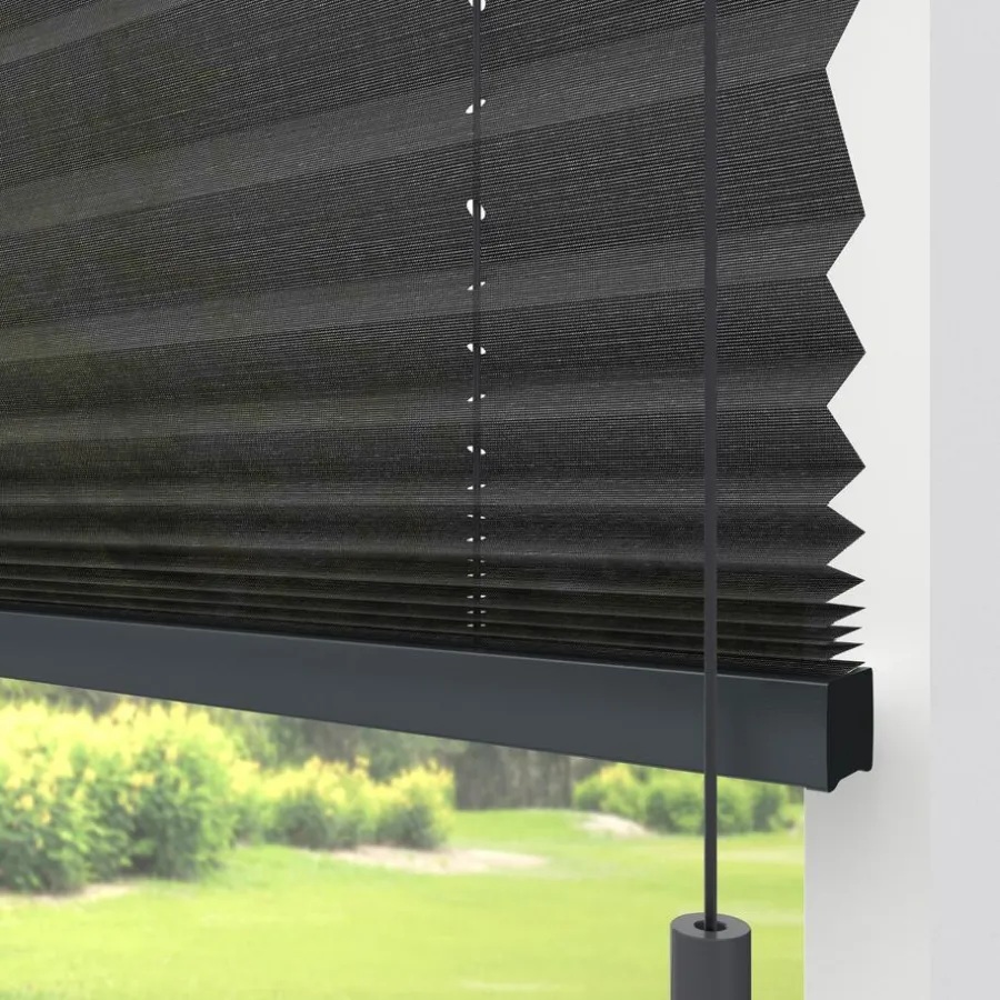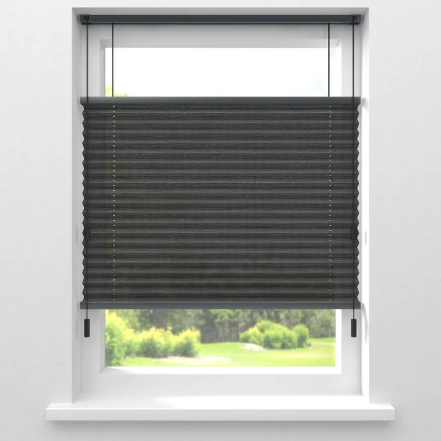Transparante enkele plissé antracietkleurig gemêleerd met structuur. Verkrijgbaar als top down, top down bottom up of top down bottom up gespannen. Een top down bottom up gordijn kan zowel aan de bovenkant als de onderkant worden uitgevouwen voor volledige controle over de gewenste lichtinval en privacy. Een gespannen plissé is zeer geschikt voor draaikiepramen omdat de stof goed op zijn plek blijft. Op maat te maken en volledig naar wens samen te stellen. Bepaal zelf de kleur van het systeem en kies uit een bijpassende koordhanger van kunststof, rvs of zwart metaal.