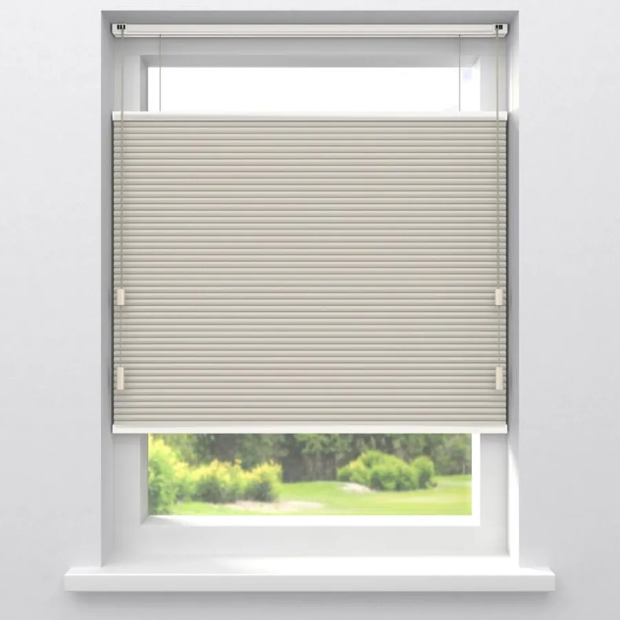 Verduisterende dubbele plissé zandkleurig met fijne structuur en witte achterzijde. Dit mooie dubbele plissé gordijn heeft de hoogste isolatiewaarde. Het heeft een honingraatstructuur die een stilstaande luchtlaag creëert, dit zorgt voor een isolerende werking. Het zorgt ervoor dat de warmte binnen blijft als het buiten koud is en andersom. De aluminium coating aan de binnenzijde, levert de meeste energiebesparing op. Voor een isolerende werking kun je ook denken aan een combinatie tussen plisségordijnen en een overgordijn. De koorden zijn verwerkt in de honingraat en zijn niet zichtbaar. Verkrijgbaar als top down, top down bottom up of top down bottom up gespannen. Een top down bottom up gordijn kan zowel aan de bovenkant als de onderkant worden uitgevouwen voor volledige controle over de gewenste lichtinval en privacy. Een gespannen plissé is zeer geschikt voor draaikiepramen omdat de stof goed op zijn plek blijft. Op maat te maken en volledig naar wens samen te stellen. Bepaal zelf de kleur van het systeem en kies uit een bijpassende koordhanger van kunststof, rvs of zwart metaal.