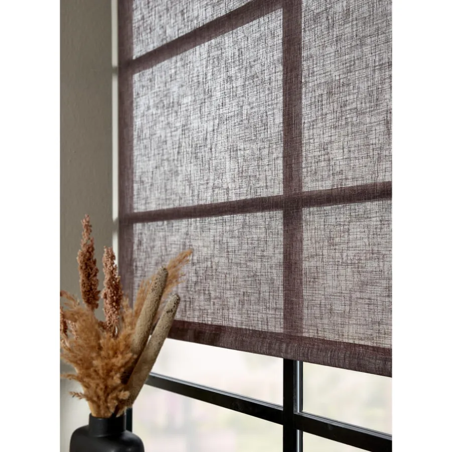 Transparant rolgordijn antracietkleurig met grove structuur en linnenlook. De stof laat veel licht door en filtert lichtinval op een natuurlijke manier. Zo behoud je de verbinding met buiten en creëer je veel sfeer. Op maat te maken en volledig naar wens samen te stellen met een ruime keuze uit accessoires en uitvoeringen. Elektrische bediening en zijgeleiding is mogelijk. Ook geschikt voor draaikiepramen. Eenvoudig af te nemen met een vochtige doek.