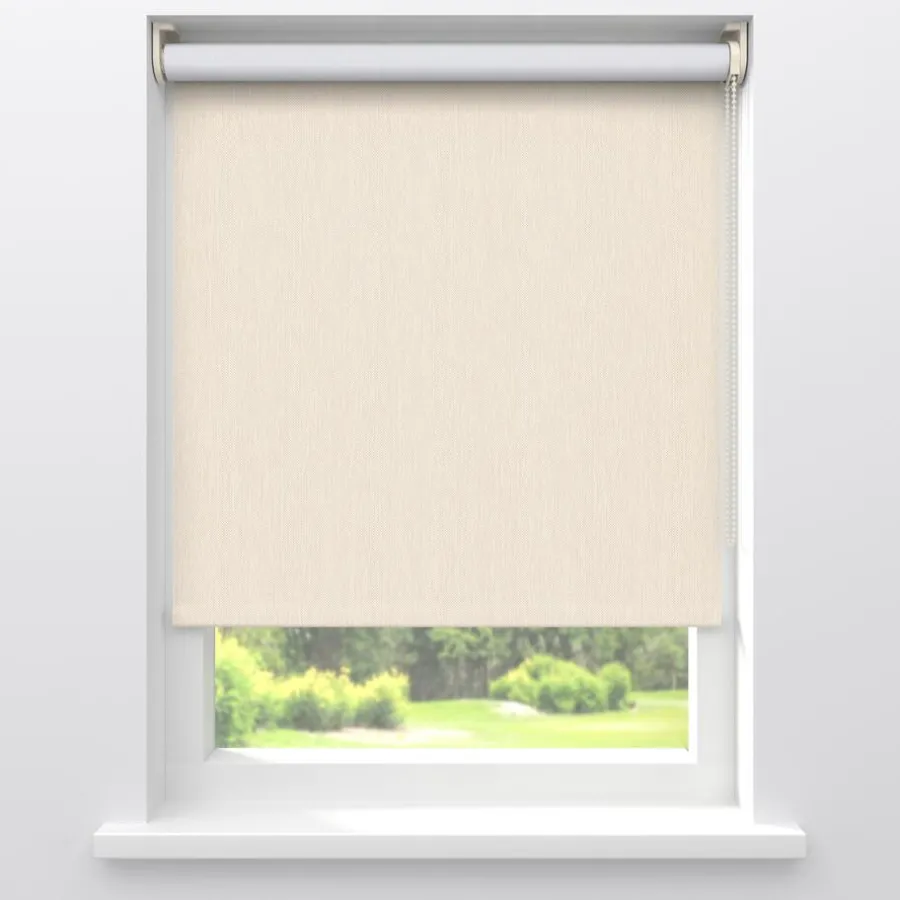 Verduisterend rolgordijn zandkleurig gemêleerd met verticale garens. De witte achterzijde zorgt voor volledige verduistering. Ideaal voor slaapkamers maar ook te gebruiken voor keukens en andere woonruimtes. Op maat te maken en volledig naar wens samen te stellen met een ruime keuze uit accessoires en uitvoeringen. Elektrische bediening en zijgeleiding is mogelijk. Ook geschikt voor draaikiepramen. Eenvoudig met een vochtige doek af te nemen.