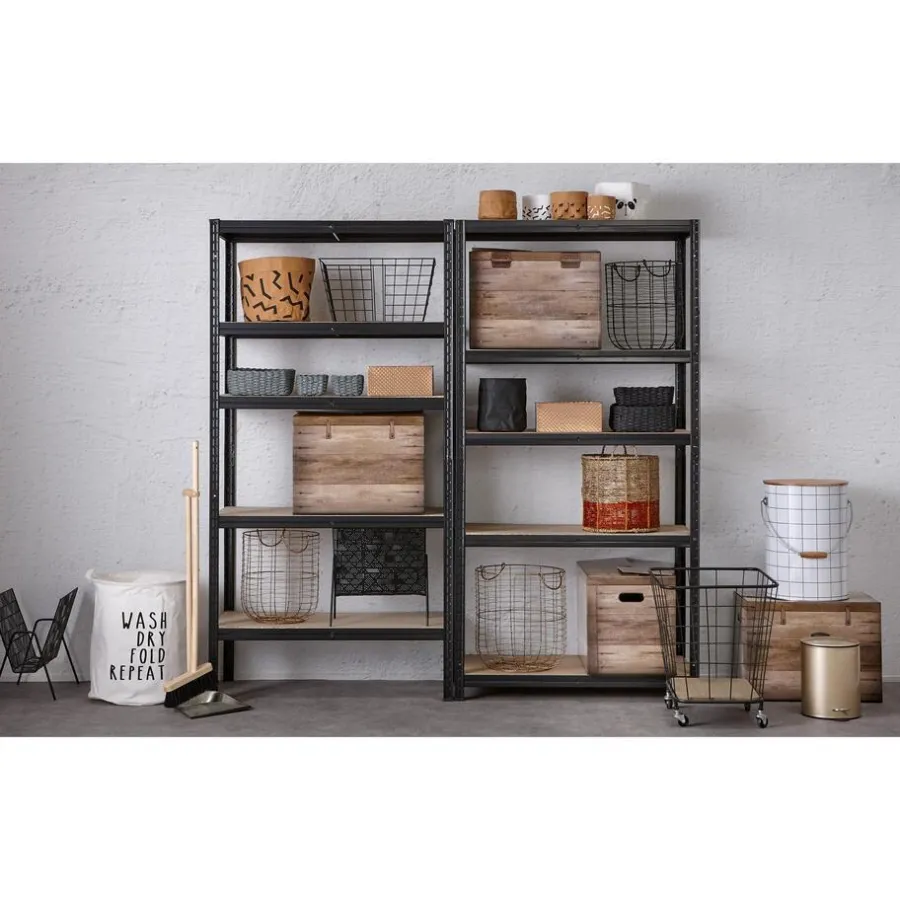 Opbergrek gemaakt van 100% metaal en MDF planken. Dit opbergrek heeft de kleur zwart. 90x45x180 centimeter. Het max. draagvermogen per plank is 175kg.