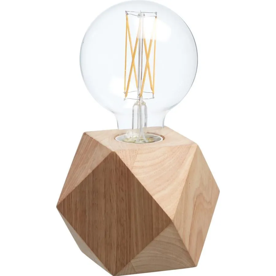 Tafellamp met hoekige houten voet. Grote fitting E27. 11 cm hoog.