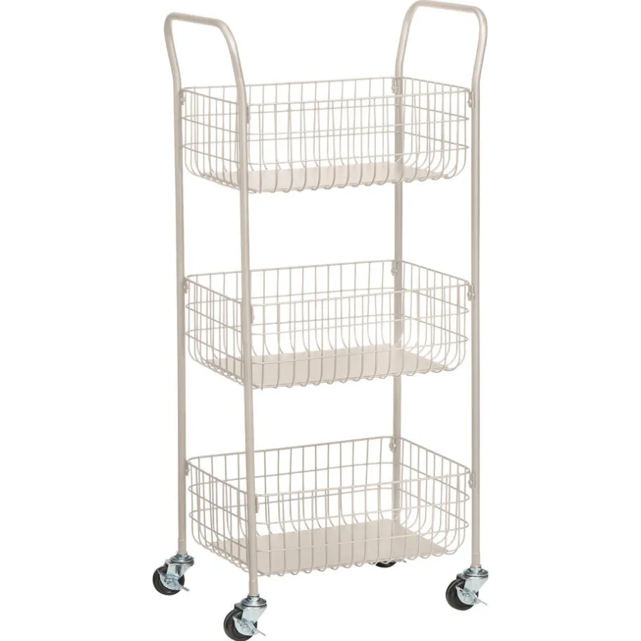 De Dequan keukentrolley in een zandkleur is de perfecte aanvulling voor jouw keuken. Met afmetingen van 34x20x74,8 cm (lxbxh) past deze compacte trolley gemakkelijk in kleine ruimtes. Gemaakt van duurzaam ijzer, biedt deze keukentrolley stabiliteit en een lange levensduur. De trolley is uitgerust met 4 wieltjes voor eenvoudige verplaatsing en beschikt over 3 verschillende rekken voor optimale opbergruimte. Met twee handvaten is de trolley gemakkelijk te verplaatsen, ideaal voor dagelijks gebruik in de keuken.