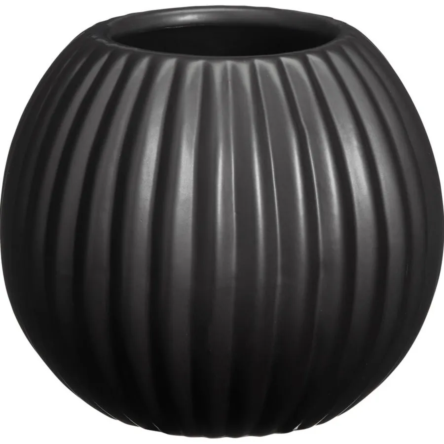 Deze bloempot is met zijn subtiele ribbeltextuur de perfecte aanvulling op je interieur. De bloempot is gemaakt van stoneware en heeft eenrustige zwarte uitstraling. Met een diameter van 14,6 cm en een hoogte van 13 cm voegt deze bloempot eensfeervolle uitstraling toe aan jouw interieur. Geef je planten een stijlvolle thuisbasis met deze prachtige bloempot.
