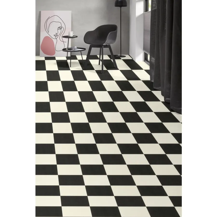 Kwantum Vinyl Vloeren*Vinyl Benson Zwart Wit Tegellook Je berekent hoeveel meters je nodig hebt door lengte en breedte in te vullen