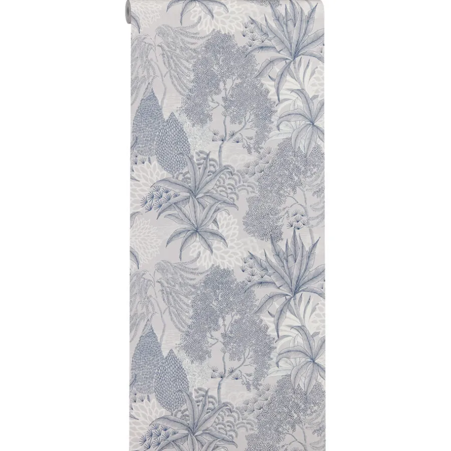 Vliesbehang Anne in sfeervolle blauwe kleur met een prachtig bladeren patroon.Het behang is voorzien van het FSC-keurmerk. Plakken met Perfax Pink. 10 meter per rol.