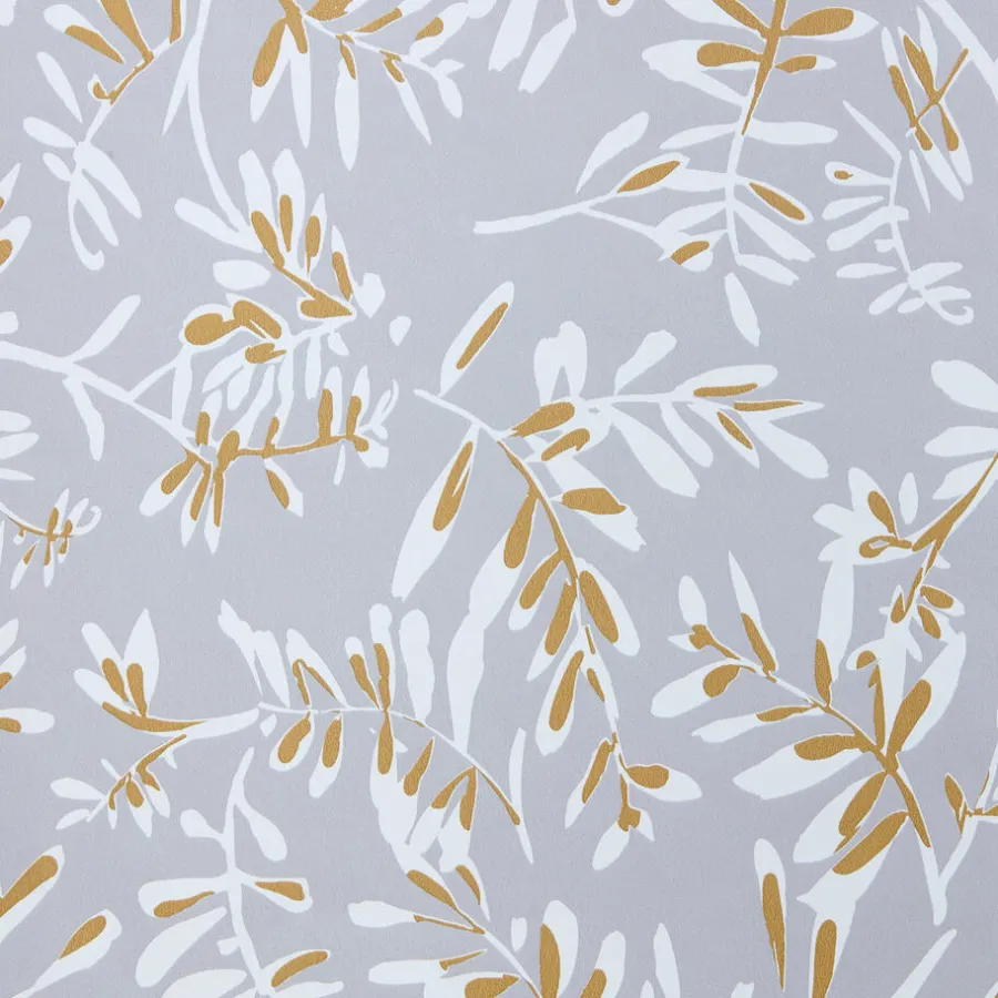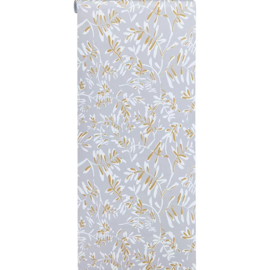 Vliesbehang Bloss in sfeervolle grijze en okergele kleur met een prachtig bladeren patroon.Het behang is voorzien van het FSC-keurmerk. Plakken met Perfax Pink. 10 meter per rol.