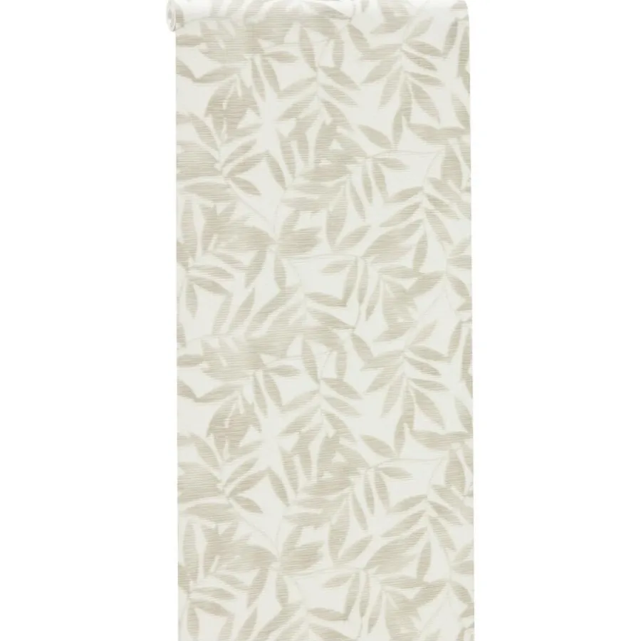 Vliesbehang zandkleurig met blad patroon. Voorzien van het FSC-keurmerk. Wand insmeren om te behangen. 10 meter per rol. 53 cm breed.