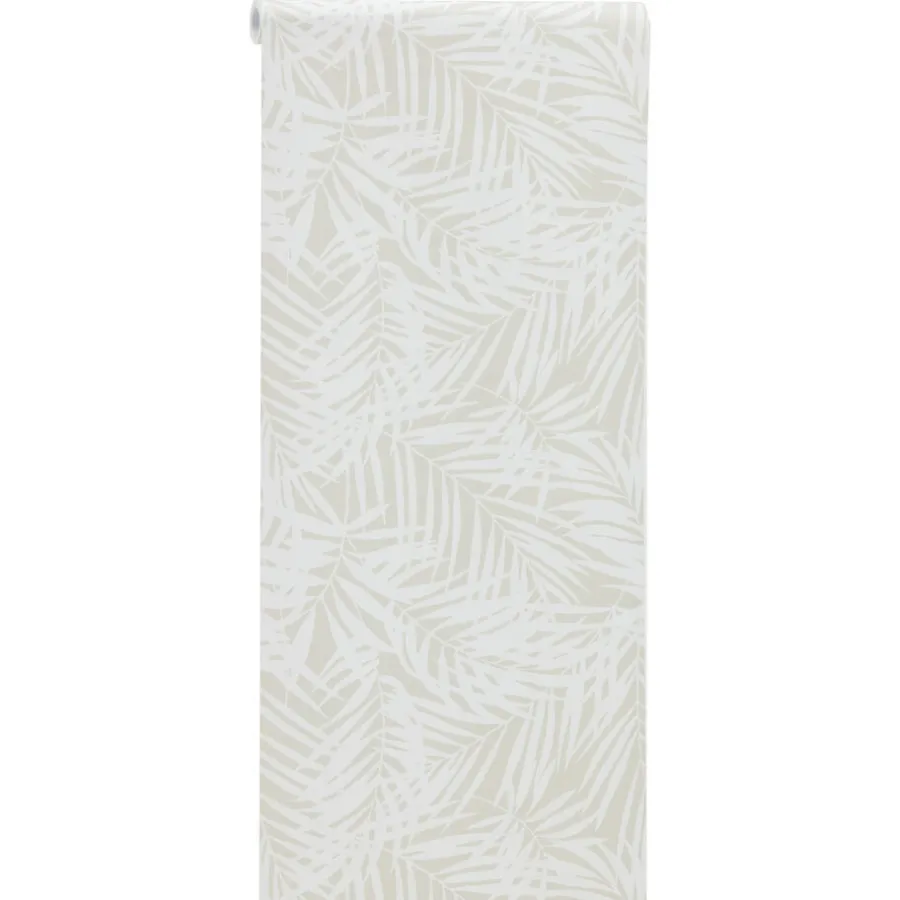 Vliesbehang Micha in sfeervolle zand kleur met bladeren patroon.Het behang is voorzien van het FSC-keurmerk. Plakken met Perfax Pink. 10 meter per rol.