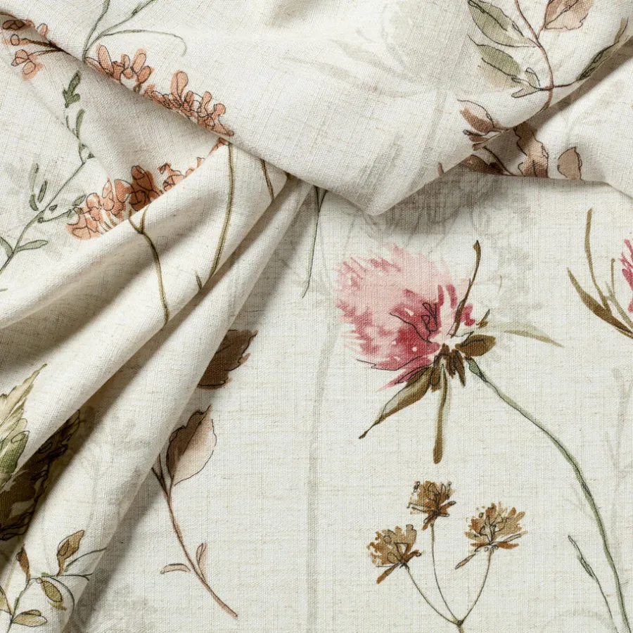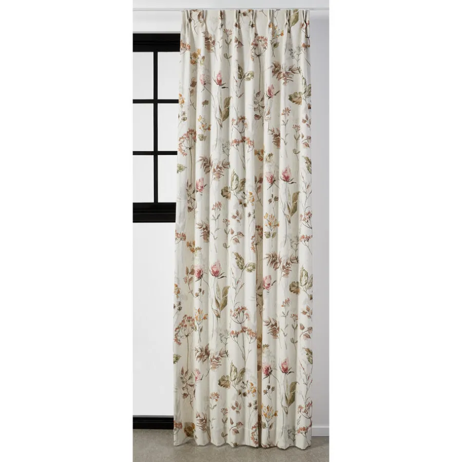 Gordijn Willow naturel is een lichtdoorlatend gordijn met een vrolijk gekleurd bloemen patroon en naturel-kleurige achtergrond. De stof bestaat uit een combinatie van recycled polyester met polyester en linnen. Dit maakt de stof slijtvast. Daarnaast zijn de gordijnen gemakkelijk schoon te maken met een vochtige doek.