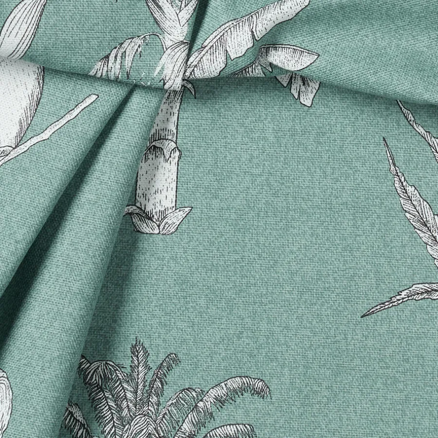 Gordijn Joris in een groene kleur. Dit gordijn heeft een print van verschillende witte bomen. De stof is gemaakt van 50% polyester en 50% katoen. Het patroonhoogte is 64 centimeter. 138 centimeter breed.