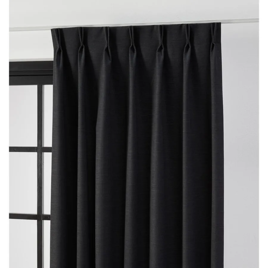 Verduisterende gordijnstof Toby in de kleur zwart is stijlvol en van uitstekende kwaliteit. Ben jij op zoek naar een prachtige verduisterende gordijnstof voor in de woonkamer, of juist voor in de slaapkamer? Met gordijnstof Toby kan het allemaal Stevig, vormvast en slijtvast. Dit black-out gordijn is aan de achterkant voorzien van een coating die ervoor zorgt dat dit gordijn 100% verduisterend is. Deze coating zorgt dat er geen licht door de stof komt. Daarom is de achterkant meestal wit en de voorkant is de gewone gordijnstof. Een black-out gordijn voelt wat stugger aan. Deze gordijnstof houdt, in tegenstelling tot dim-outs 100% het zonlicht tegen. Bij de confectie van deze kwaliteit kunnen kleine gaatjes ontstaan. Dit is inherent aan de stof en kan niet voorkomen worden. 140 cm breed.