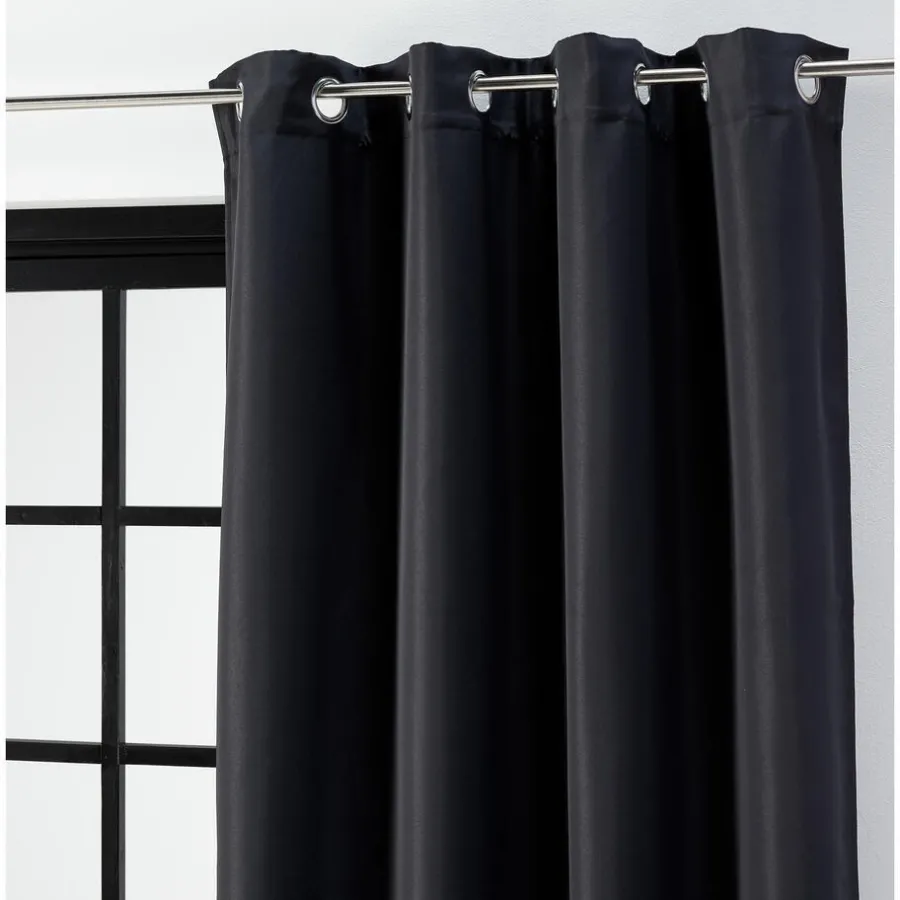 Deels verduisterend kant en klaar gordijn zwart. Inclusief ringen. 135×260 cm (bxl).