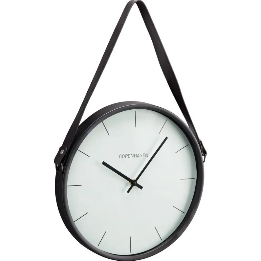 Zwarte metalen wandklok. 33 cm doorsnede.