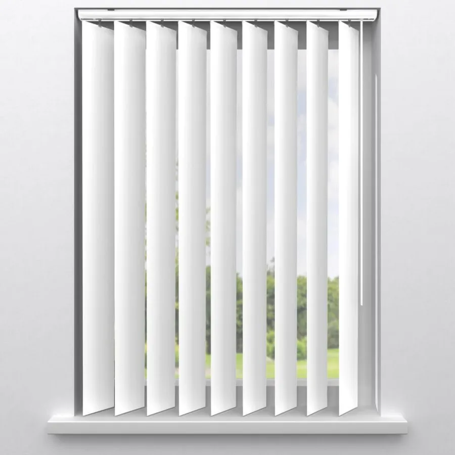 Verticale lamellen van wit PVC. De lamellen zijn 9 cm breed. De syteemkleur en de tuimelstok zijn wit. Kies zelf aan welke zijde je de lamellen wilt bedienen en bepaal eenvoudig de mate van lichtinval. De lamellen zijn vochtbestendig, eenvoudig schoon te maken en ook te gebruiken voor keukens en slaapkamers. Op maat te maken en met de juiste afmetingen te bestellen.