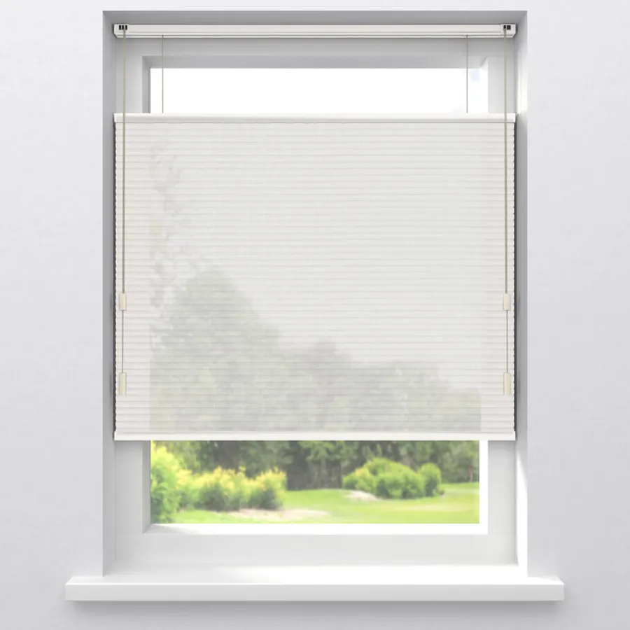 Transparant Plisségordijn Lou wit is een dubbel plissé gordijn. Hierdoor heeft het een honinggraatstructuur en geeft daardoor een luxe uitstraling. Deze structuur creëert een stilstaande luchtlaag en daardoor blijft de warmte binnen voor optimale isolatie en geluiddemping. Dit plissegordijn heeft een plooibreedte van 25mm en is daardoor erg geschikt voor kleine tot middelgrote ramen.