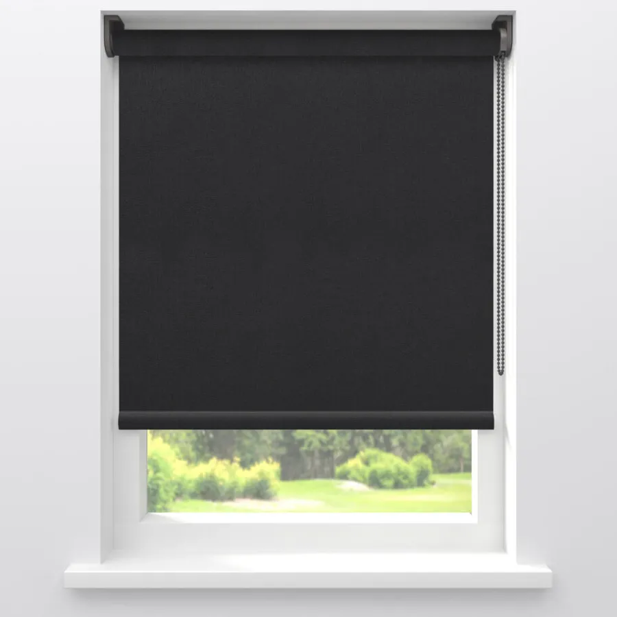 Rolgordijn Mara is een neutraal zwart-kleurig rolgordijn. De stof is gemaakt van 100% polyester. Hierdoor zijn de rolgordijnen gemakkelijk schoon te maken met een vochtige doek. Vermijd hierbij hard wrijven, om de stof niet te beschadigen. De verduisterende eigenschap van het rolgordijn zorgt ervoor dat het volledig donker blijft, wat ideaal is voor in jouw slaap- of kinderkamer.