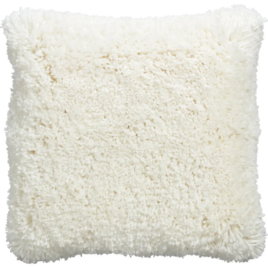Sierkussen Bazas heeft een witte kleur en een sfeervol en modern bouclé patroon.Het vierkanten kussen heeft een afmeting van 45×45 cm.
