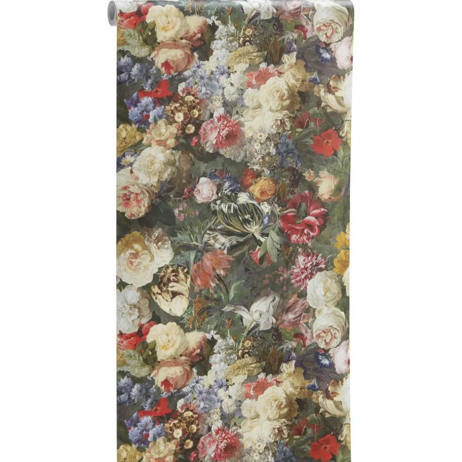 Vliesbehang multicolor met rijk bloemendessin. Plakken met Perfax Roll-On.
