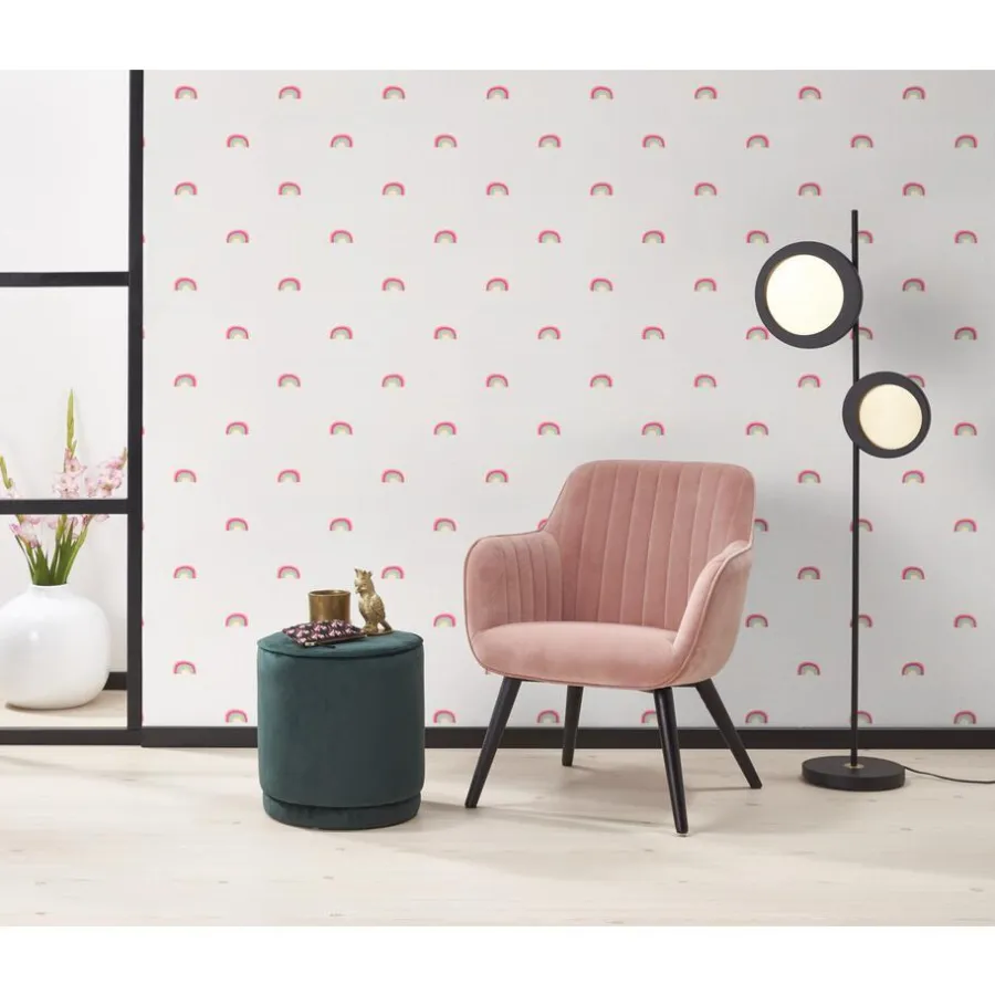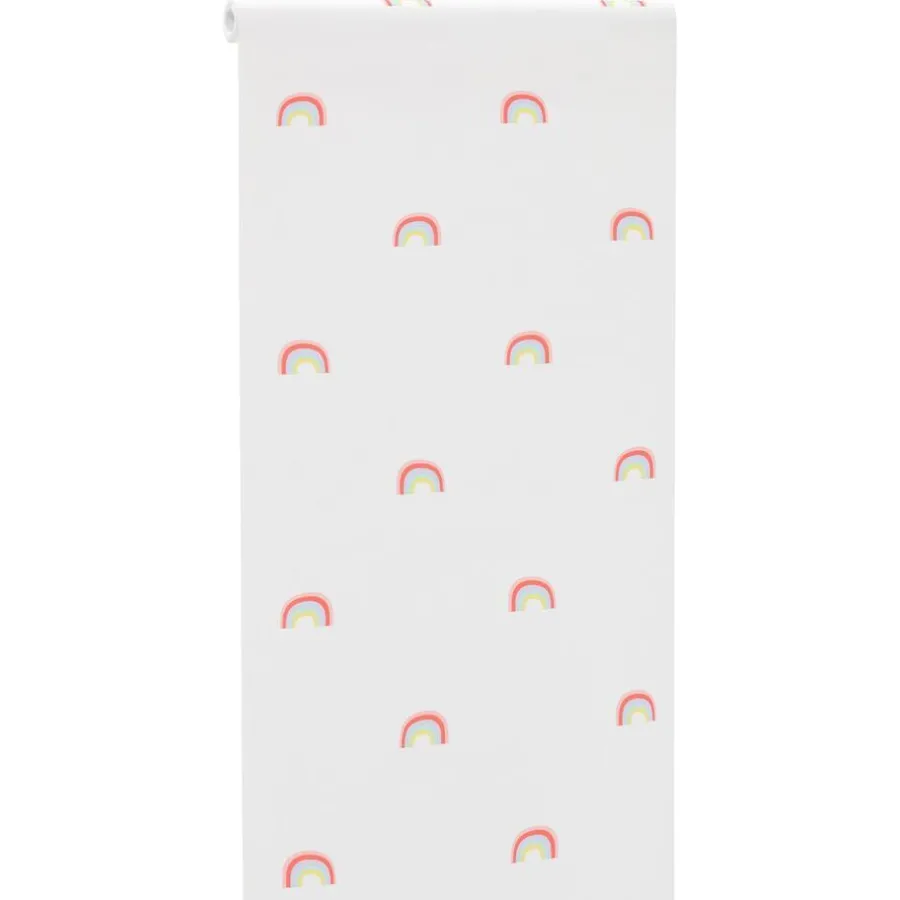 Vliesbehang met vrolijke regenboog print. Licht afwasbaar. Voorzien van het FSC-keurmerk. 10 meter per rol.