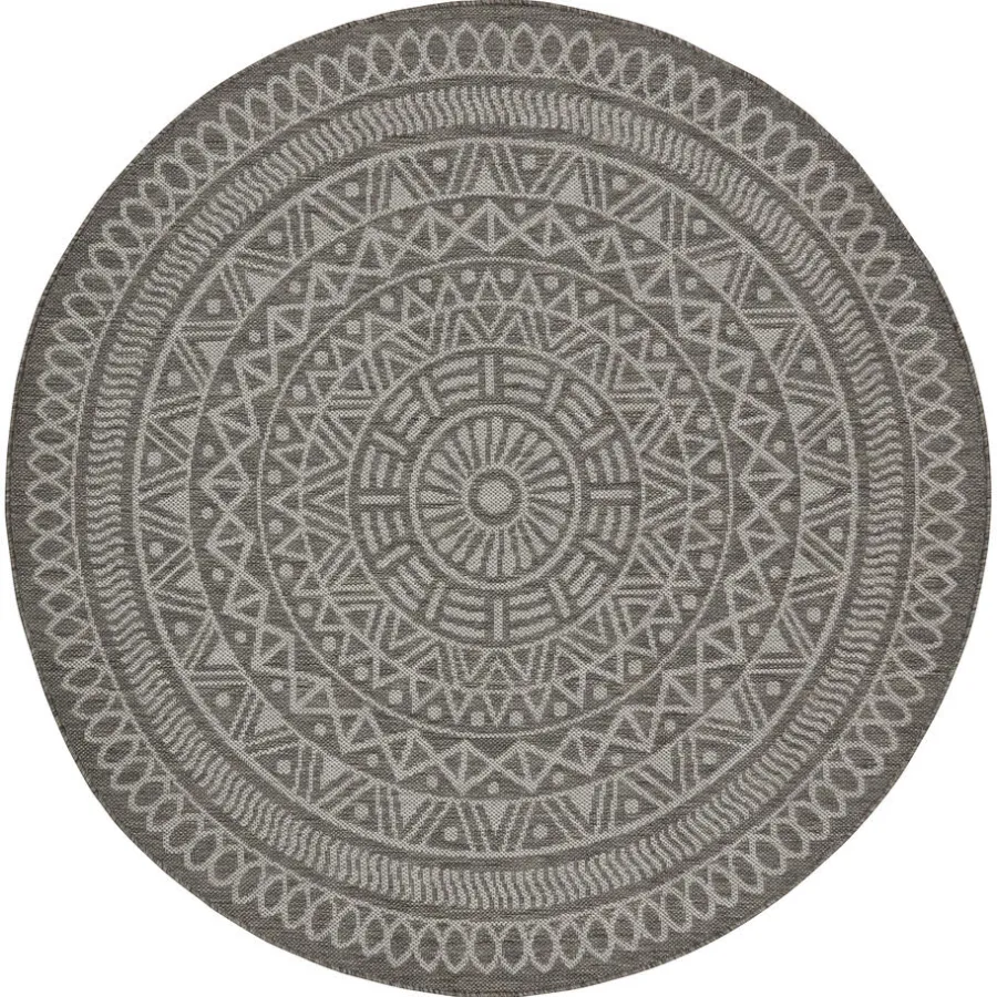 Rino is een rond vloerkleed die stijl en warmte toevoegt aan elke kamer. Met zijn grijze en opvallende Aztec print geeft dit vloerkleed een eigentijdse touch aan je interieur. De laagpolige textuur zorgt voor comfort en maakt dit kleed perfect geschikt voor drukbezochte ruimtes.