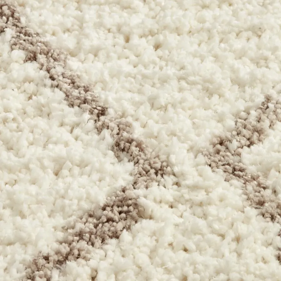 Vloerkleed in beige kleur met ruit patroon. Veerkrachtig, kleurvast en voelt zacht aan. Voorzien van het Care & Fair keurmerk. 230×160 cm (lxb).