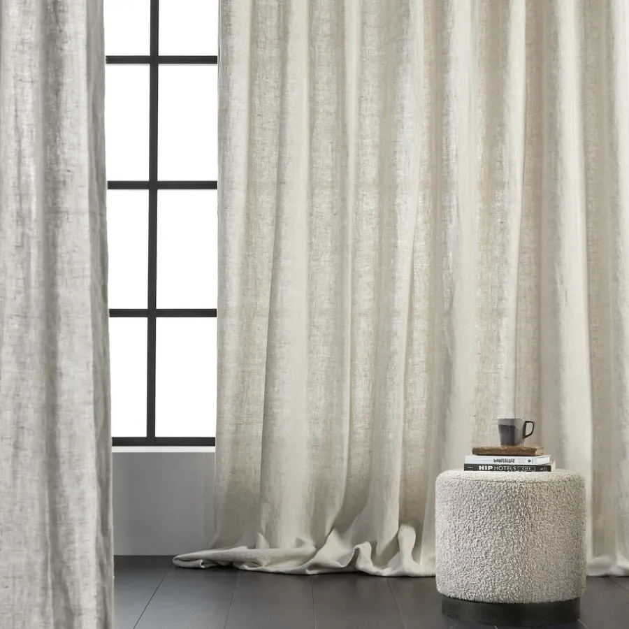 Gordijnstof van soepelvallend naturelkleurig linnen. Pluisvrij, luchtig en sterk. 140 cm breed.